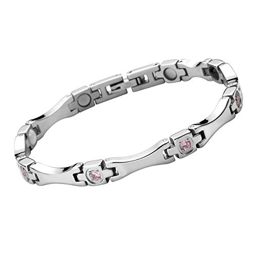 AllerPierce Bracciale magnetico da donna con zirconi, in acciaio inox, regalo per donne e ragazze, lunghezza regolabile, 18.5 centimeters, Zirconi