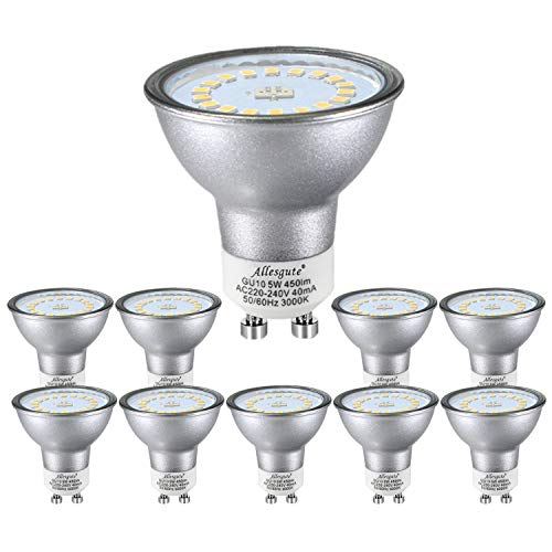 Allesgute Lampadine a LED GU10, luce bianca calda, 3000 K, 5 W, sostituiscono lampadine alogene da 45 W, 240 V, non dimmerabili, a risparmio energetico, confezione da 10