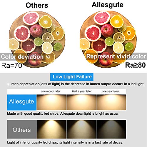 Bassa mancanza di luce: Allesgute utilizza chip LED 2835SMD di alta qualità per ottenere un'elevata efficienza luminosa, che aiuta anche a prevenire la perdita di luce. Anche dopo un uso prolungato, le lampadine forniscono un'illuminazione brillante senza sfarfallio, con conseguente migliore protezione degli occhi.