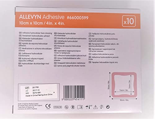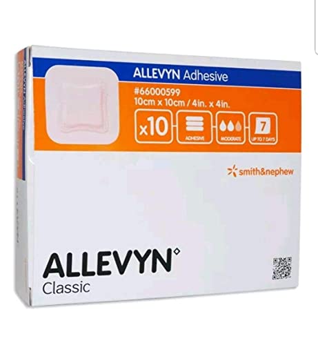 Allevyn Classic, Adhesive Dressing, cerotto per bendaggio, 10 cm x 10 cm. Confezione da 10
