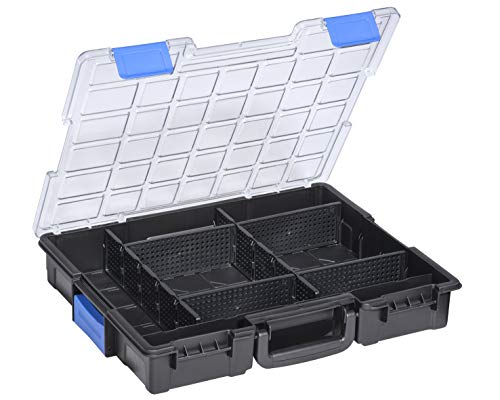Allit Cassetta per piccoli pezzi 454260 con clip di collegamento, divisori flessibili e coperchio ad alto impatto, EuroPlus Pro >K< 8-6, installazione per veicoli, valigetta per viti, impilabile