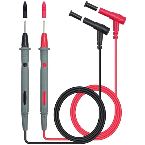 Sonda multimetro versatile: Scoprite i nostri innovativi puntali per multimetro con una capacità di corrente fino a 10A e una tensione massima di 1000V. Sono dotati di una spina universale per multimetro (spina a banana standard da 4 mm), che li rende pratici da usare. La punta misura circa 1,6 cm, consentendo un posizionamento preciso intorno ai fili da misurare. La lunghezza complessiva è di circa 103,5 cm, per una portata confortevole.