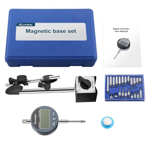 ALLmeter Comparatore Centesimale Meccanico 0-25.4mm con Base Magnetica da 70KG con Set LCD Indicatore Elettronico 0.01/0.0005'' Unità Pollici/Metrica con Braccio Flessibile Porta Quadrante ON/OFF