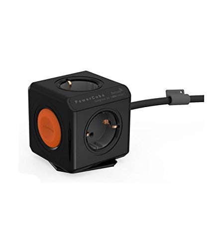 Allocacoc PowerCube Extended Remote Spina a 4 Prese con Switch, Nero/Arancione