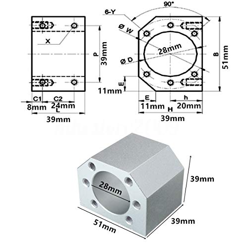 Alloggiamento Dado per Vite Ricircolo di Sfere per Sfu1605 / 1610 Viti Ricircolo di Sfere in Alluminio Supporto Per Staffa di Montaggio Su Sedile per Foratura Stampante