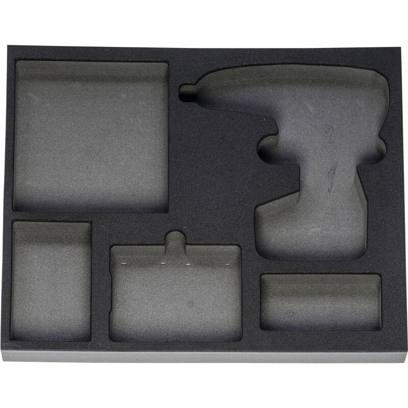Assortimenti standard di utensili in alloggiamenti sagomati in espanso rigido bicolore in PE. La struttura non porosa dell'espanso è impermeabile e resistente agli oli. Strato superiore color antracite, quello inferiore di contrasto color grigio mette in evidenza gli utensili mancanti. Dati tecnici Tipo di prodotto Inserto in espanso rigido Larghezza in G 20 Profondità in G 16 Riempimento di un cassetto in G 20×16 Forma in espanso rigido LD45, spessore, mm 50 Larghezza, mm 500 Numero di utensili 62 Altezza minima appropriata frontalino cassetti, mm 125 Profondità, mm 400 Esecuzione vuoto per assortimenti di utensili