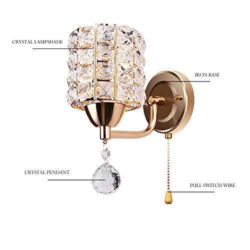 ✔ 【Lampada da Parete a Sospensione in Cristallo Stile Moderno】: paralume in materiale di cristallo, sorgente luminosa a LED, parete hardware, corpo lampada in metallo, cristallo K9, telaio in cristallo resistente all'usura e antiruggine.
