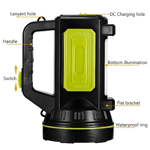 ALLOMN Torcia a LED ricaricabile, multifunzione, lampada da campeggio, super luminosa, luce portatile a LED, luce di ricerca, lanterna impermeabile da campeggio