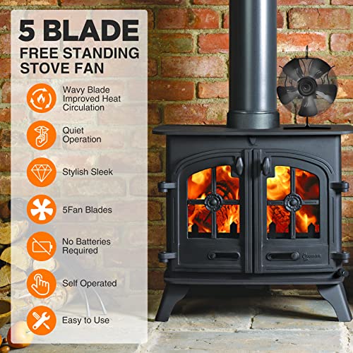 ALLOMN Ventola Per Stufa a Legna, 5 Pale Mini Ventilatore Camino Ventilatore per Caminetto per Stufa a Legna Ventilatore da Camino Ventola Stufa a Gas per Legna/Bruciatore di Tronchi/Stufa/Camino
