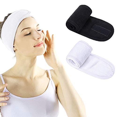 AllRing Fascia per capelli per make up, spa, con chiusura in velcro, in spugna, regolabile, per lo sport, yoga, 2 pezzi, nero e bianco)