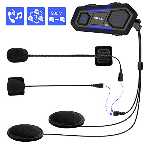 ALLROS-Interfono Bluetooth per Moto, Moto Auricolare impermeabile,Casco Interfono per moto fino a 3 Riders, compatibile con Cancellazione del Rumore