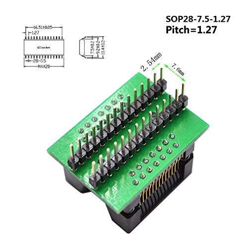 ALLSOCKET SOP28-7.5-1.27 SOP28 Pacchetto SOIC28 SO28 SOP28 a DIP28 Adattatore di programmazione Presa di prova 1.27mm Passo 7.5mm Larghezza (300mil) S-SOP28-1.27 OTS28 (28)-1.27-04