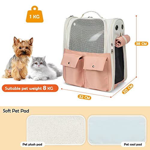 ALLSOPETS Zaino Trasportino Portatile per Cani e Gatti di Piccola Taglia Comodo Traspirante Zainetto per Cani con Tendina Parasole Laterale per Viaggio Escursionismo Campeggio Rosa