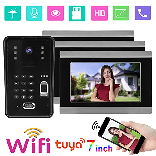 Allsor Sistema di Videocitofono Cablato, Telecomando App Wi-Fi da 7 Pollici Campanello Video Visione Notturna Controllo in Tempo Reale con 3 Monitor Kit Campanello per Villa Office(EU)
