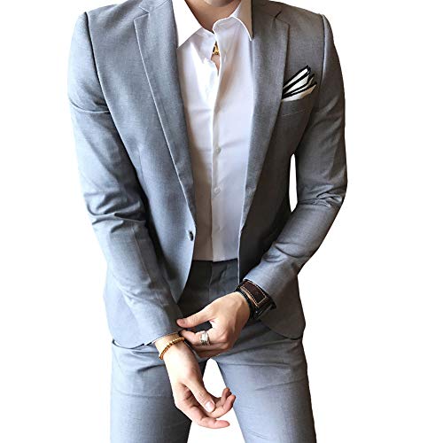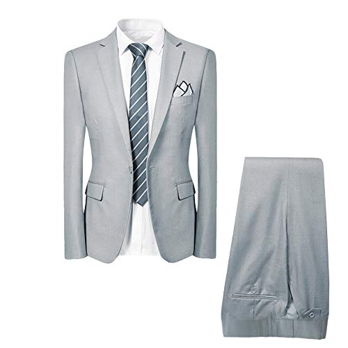 Allthemen Abito da Uomo in 2 Pezzi Blazer da Smoking e Pantaloni Giacca Monopetto con Un Bottone Suit Formale da Lavoro Business Grigio Chiaro S