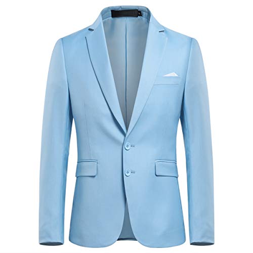 Allthemen Blazer da Uomo a Due Bottoni con Spacco Posteriore in Tinta Unita Jacket da Abito d'Affari Business Blu Cielo XS