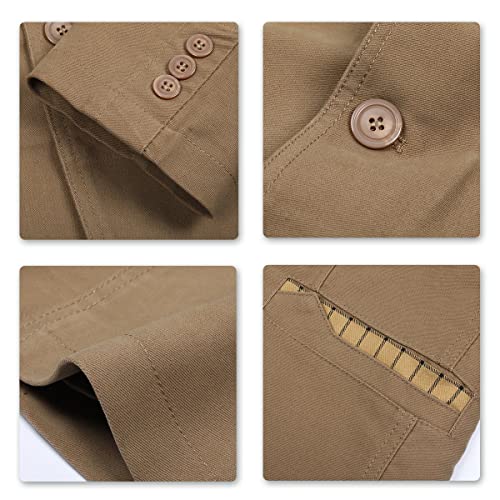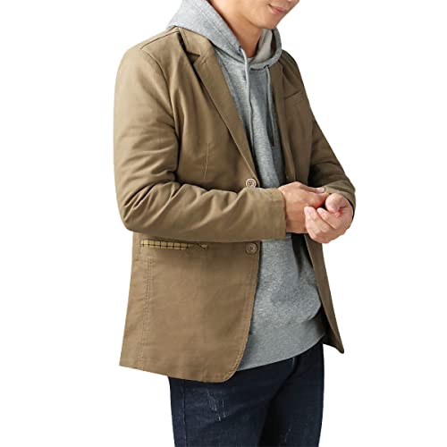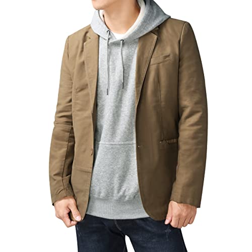 Allthemen Blazer da Uomo Casual Giacca Slim Fit Giacche in Cotone Monopetto a Due Bottoni Blazer Elegante Tinta Unita Cachi S