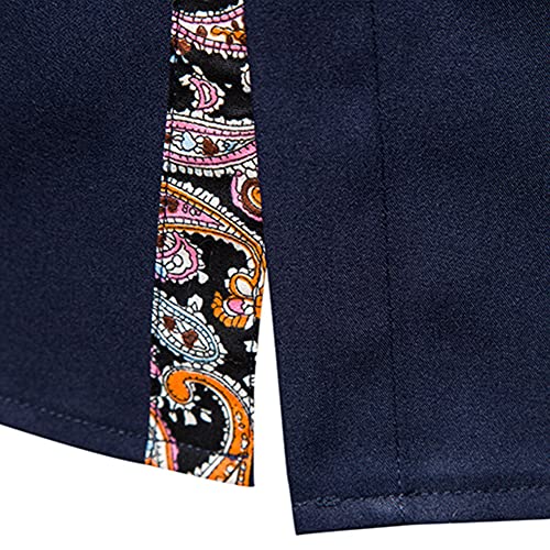 Allthemen Camicia a Maniche Lunghe da Uomo Camicia a Contrasto Interna Slim Fit Casual Fancy Top Modello Unico Blu Navy L