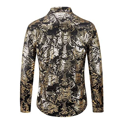 Allthemen Camicia da Uomo in Jacquard Camicia a Maniche Lunghe Paisley Regular Fit Camicia Casual Oro XL