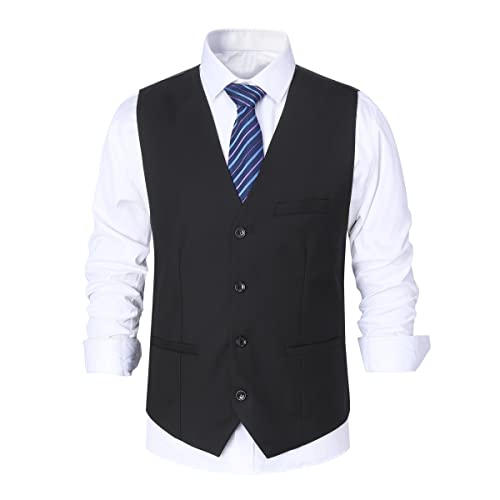 Allthemen Gilet da Uomo Slim Fit con Scollo a V Vest da Lavoro Casual Gilet Monopetto con Bottoni nero XS