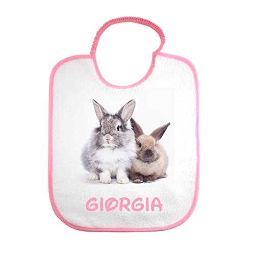 ALMATEX SRL ASILO PERSONALIZZATO CON NOME bavaglino spugna con elastico cm.27x30, PERSONALIZZAT0 Made in Italy - CONSEGNA TEMPESTIVA (COPPIA CONIGILI ROSA)