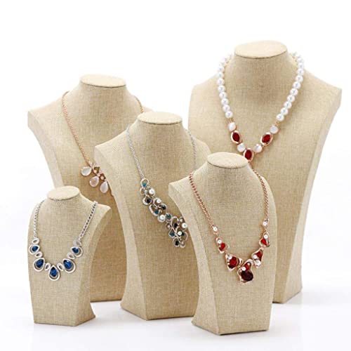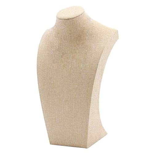 Almencla Manichino con Supporto per Busto in Legno di Lino per Collana - Portagioielli per Catena di Collane, Girocollo, Ciondolo - Beige, 5 Misure - 175 * 290mm