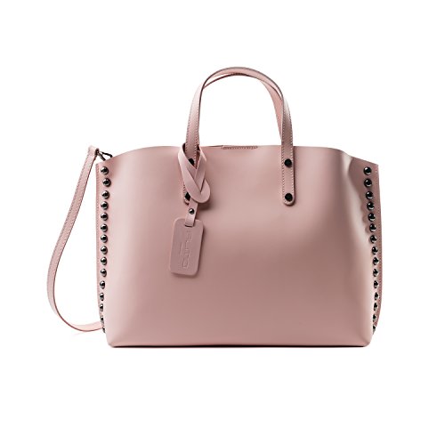 Almo - Borsa in pelle da donna made in Italy, colore: rosa antico, a tracolla, a spalla con tracolla staccabile