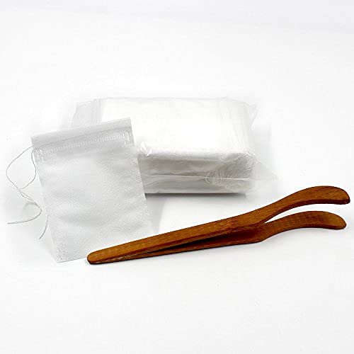 Almondcy, 100 filtri da tè monouso con laccetto, filtri di carta vuoti, con 1 clip da tè, 7*9CM