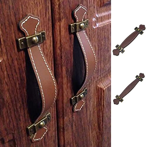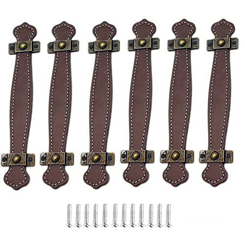Alnicov,6 pezzi,maniglie per cassetti in pelle, pratiche maniglie per valigie vintage, maniglie per cassetti in pelle, per ante dell'armadio marrone chiaro