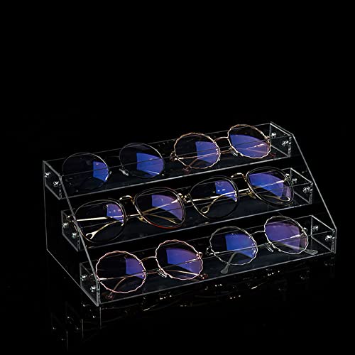 Questo espositore in acrilico trasparente a tre strati può contenere 6 paia di occhiali da sole o 30 bottiglie di smalto, adatto per essere esposto in vari negozi di occhiali e negozi di bellezza.