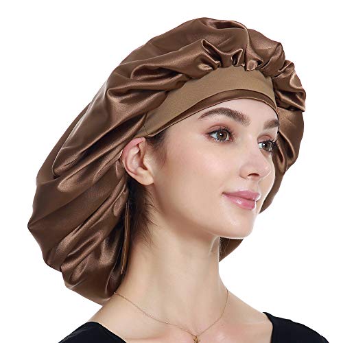 Alnorm Cuffia da notte in raso per donne capelli ricci cappello da notte caffè