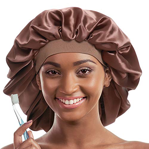 MASSIMIZZA LA PROTEZIONE DEI CAPELLI. Il set extra large in raso e striscia di raso ti dà una doppia cura dei capelli. L'elastico personalizzato rende il cappello adatto alla maggior parte delle teste.