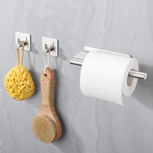 ALOCEO Porta carta igienica da Muro e 2 Ganci Adesivi Bagno, Portarotolo carta igienica Adesivo in 304 Acciaio inox, Argent