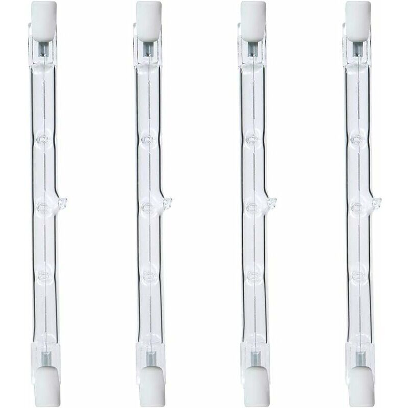 Set di 4 alogene R7s J118 160 W = 200 W. Tensione 230 V, 3100 lumen, luce bianca calda 2700 K. Faretto alogeno lineare R7s lungo 118 mm. Luce istantanea con intensità variabile. Conforme agli standard europei. Durata: 1000 ore.
