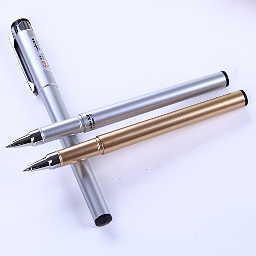Alohha, penna a sfera in metallo, portatile, inchiostro nero, punta sottile da 0,5 mm, colore: argento, set da 5