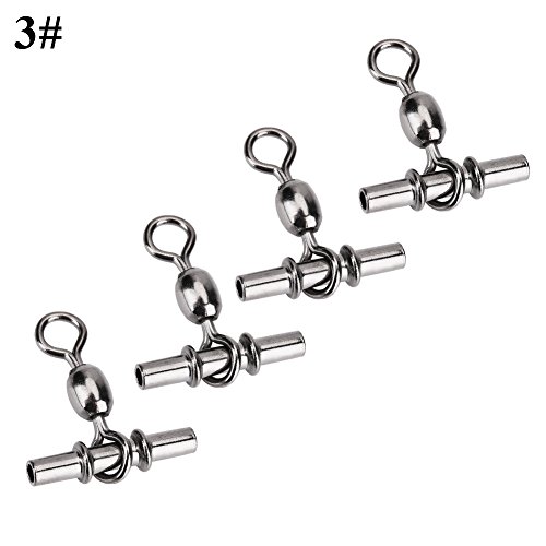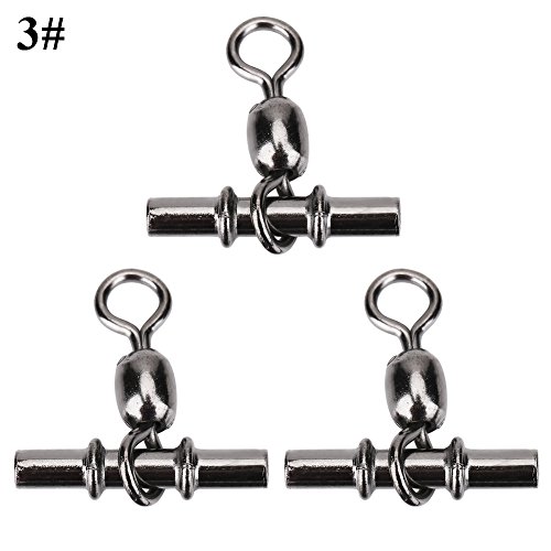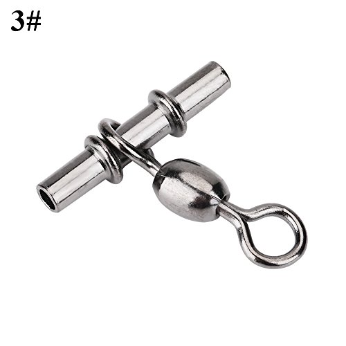 DESIGN UNICO: Questo connettore girevole da pesca adotta il design a forma di T, che non è facile da intrecciare la linea di pesca per un facile utilizzo.