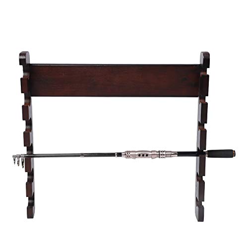 Alomejor Porta-Canne da Pesca in Legno Semplice Supporto da Pavimento per Montaggio Su Palo a Parete per Deposito di Canne da Pesca(Teakwood color)