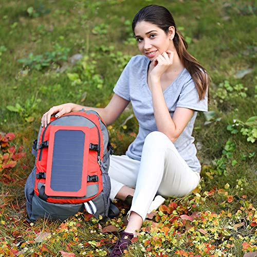 Alomejor Zaino Solare da Viaggio Zaino con Carica Solare da Esterno Zaino con Pannello Solare e Cavo di Ricarica USB Per L'Escursionismo Campeggio(Rosso )
