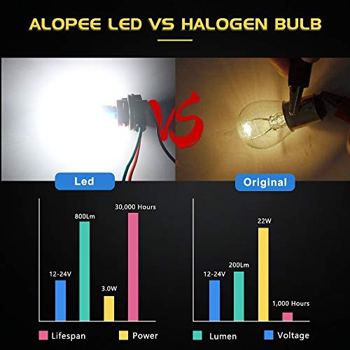 Vantaggio: più del 300% più luminoso della lampadina alogena originale, corpo in alluminio con copertura in vetro per la massima emissione luminosa e migliore distribuzione del calore, circuito integrato a corrente costante incorporato per una maggiore durata e basso consumo energetico.