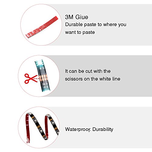 EASY FUNZIONAMENTO:l'ingresso striscia principale è USB 5V / 2-3A, se non funziona, si prega di tagliare la linea a 100 cm (39 pollici), allora funzionerà normalmente. Plug-and-Play, il controllo attraverso la pressione del tasto relativo e scegliere la modalità / velocità / luminosità è necessario, si può ricordare la prima volta che l'impostazione