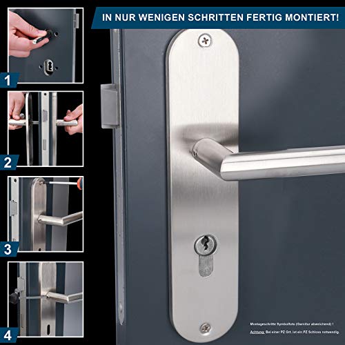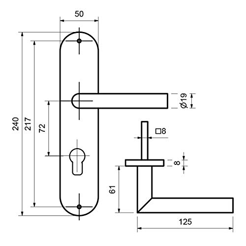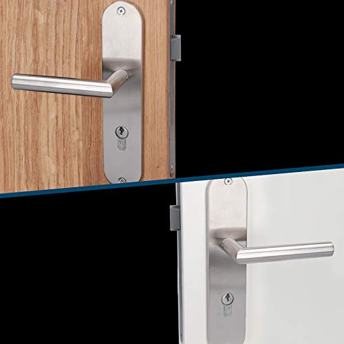 Adatto a tutte le porte standard con pannello di spessore 38-45 mm, lunghezza ca. 240 mm, larghezza ante 50 mm, interasse fori: 72 mm