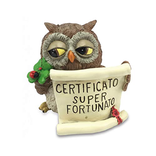 Les Alpes Funny Gufo Certificato Super Fortunato 6,5cm - Figura Statuina Dipinta a Mano in Resina Sintetica - Collezione Funny World Funny Gufi - 014 93139