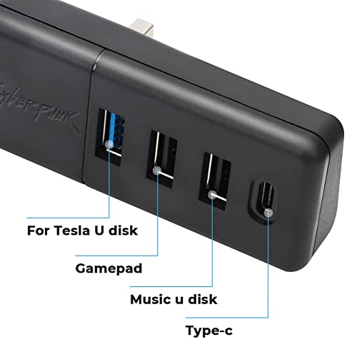 【Hub USB per portaoggetti 4 in 1】 L'hub USB consente di aggiungere istantaneamente la per Model 3/Y. 1 porta USB 3.0, 2 porte USB 2.0, 1 porta di tipo C: la porta USB 3.0 può alimentare o trasferire dati a qualsiasi dispositivo Dispositivi compatibili (dashcam, gamepad, ricarica, unità flash musicali, unità USB, ecc.) o trasferire dati .
