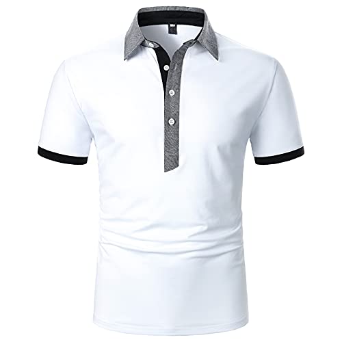 Alphahope Manica Corta Camicie Ragazzo Eleganti Taglie Forti Personalizzata Camicie Casual Classiche Ragazzo Top T-Shirt da Uomo con Risvolto a Maniche Corte con Cuciture a Tre Colori estive