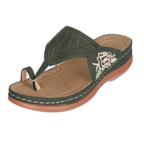 Alphahope Moda donna Furry Pearls Infradito Pantofole Zeppa Casual Infradito, Sandali Donna Casuale Spiaggia Piatte con Fiocco A Righe Pantofole Antiscivolo Moda Estiva Sandali Ciabatte (Verde,38 EU)