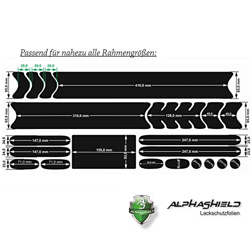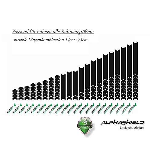 AlphaShield - Set di 21 pellicole protettive trasparenti per la verniciatura della bicicletta, per telaio della bicicletta, K043 (nero opaco 100µm)