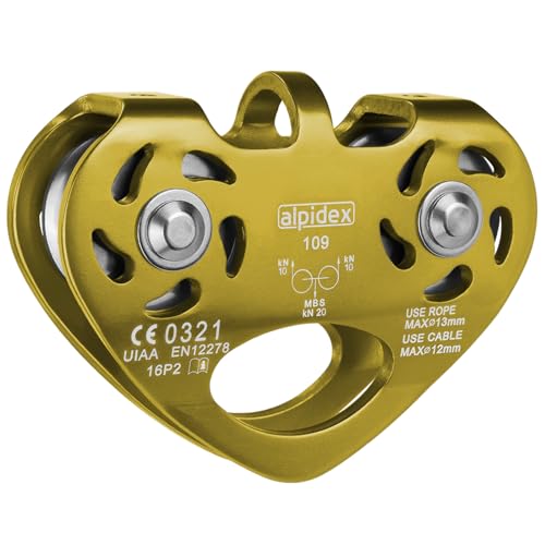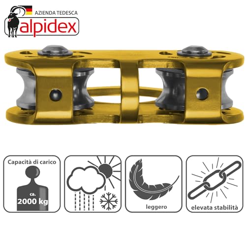 ALPIDEX Carrucola Tandem Pulley - Adatta a Corde di Tessuto con Un Fino a 13 mm e a Corde di Acciaio con Un Diametro Fino a 12 mm, Colore:Oro
