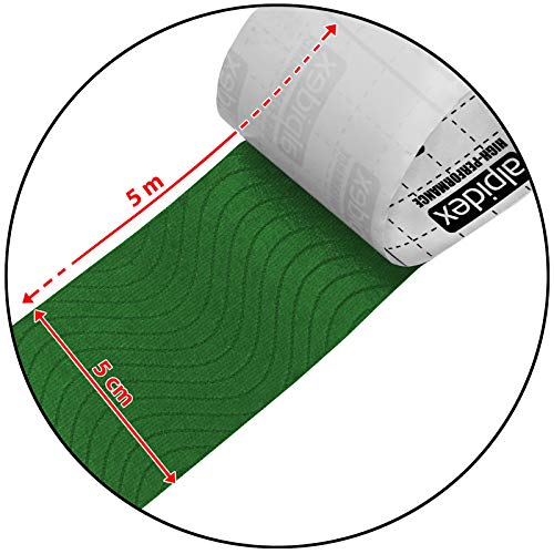 ALPIDEX Nastro Kinesiologico Tanti Colori 1/3/ 6/12 Rotoli 5 m x 5,0 cm E-Book Esempi Applicazione Tape Kinesiologico Muscolare Cerotto, Colore:verde, Quantità:6 rotolo