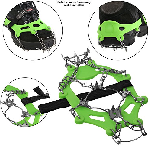 ALPIDEX Ramponi Arrampicata Ghiaccio Neve Ramponi Antiscivolo Ghiaccio Scarpe 21 Denti Acciaio Catene Acciaio Ice Tachetti, Taglia:XL, Colore:Green