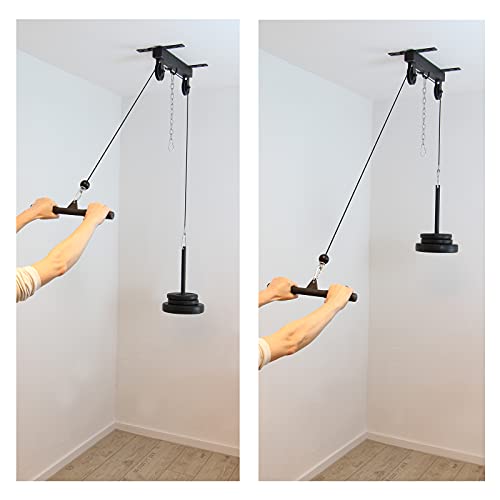 ALPIDEX Stazione Fitness Cavo di trazione Sistema di puleggia per Cavi Include Barra per tricipiti e Catena di Estensione